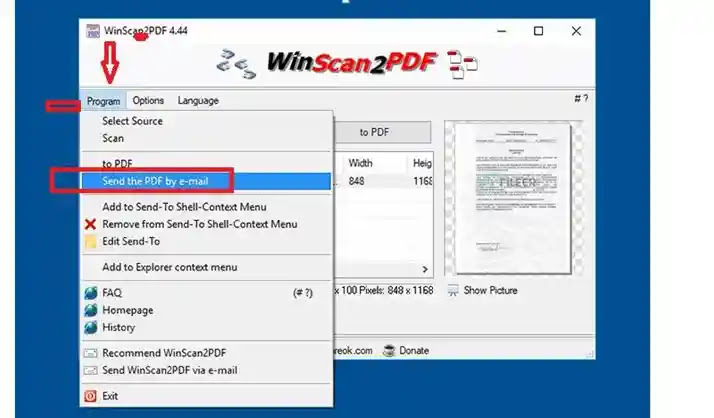 - كما يمكنا أرسال الملفات الممسوحة ضوئيآ عبر البريد الالكترونى بالنقر على Send the pdf by e-mail ثم أختيار program
