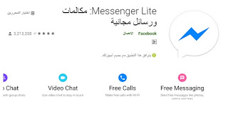 وهو تطبيق رسمي يتبع شركة فيس بوك ويتمتع هذا التطبيق بجميع المواصفات والادوات المتوفر في اصدار فيس بوك ماسنجر وفي هذا المقال اليوم سوف نقوم بوضع رابط التنزيل الخاص ببرنامج Messenger Lite حيث سيتم نقلك الى افضل متجر لتطبيقات الاندرويد متجر جوجل بلاي والذي يظم ملاين التطبيقات وبعد انتقالك الى المتجر سوف تشاهد جميع مواصفات التطبيق اضافة الي تعليقات المستخدمين وعدد التنزيلات له والتقيم وبعدها يمكنك ان تقوم بتزيل Messenger Lite برابط مباشر من خلال الضغط علي التنزيل.